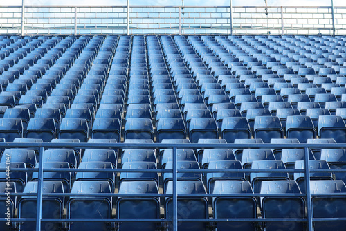 © Benjamin Salazar , Fototapeta premium Empty blue stadium seats pattern.