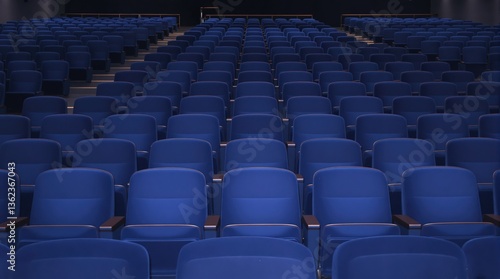 Naklejka premium Empty blue theater seats arranged in neat rows, awaiting the audience for an...