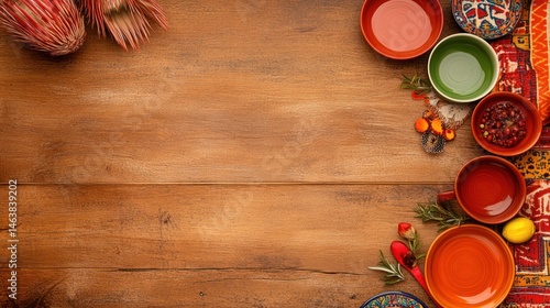 © afridwi, Fototapeta premium Empty bowls and plates on rustic wooden table