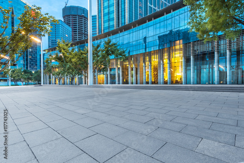 © kalafoto, Fototapeta premium empty brick floor with cityscape and skyline