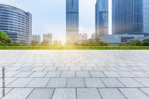 Fototapeta premium Empty brick floor with modern building in Shanghai