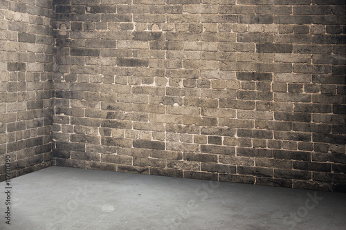 © weedezign, Fototapeta premium Empty brick wall and concrete floor interior in perspective view