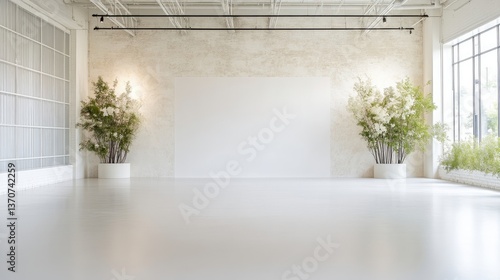 © PAPAHJAHATZ, Fototapeta premium Empty, bright, modern event space with plants