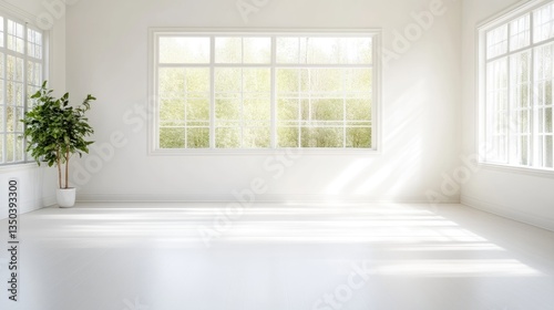 © Kaminashi Nozomi, Fototapeta premium Empty bright room with large windows