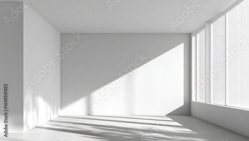 © Alal, Fototapeta premium Empty, bright white room with large windows and shadows