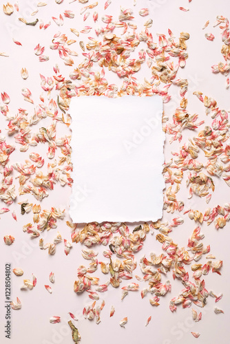 Obraz premium Empty card surrounded dried petals confetti.