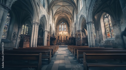 Fototapeta premium Empty Cathedral Interior. Concept of Spirituality, History, and Religion.