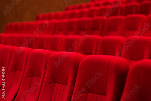 Obraz premium Empty cinema hall with red seats. Movie theatre