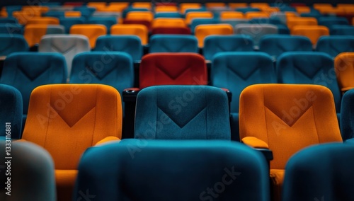 © Faisal, Fototapeta premium Empty Cinema Seats: A Colorful Perspective