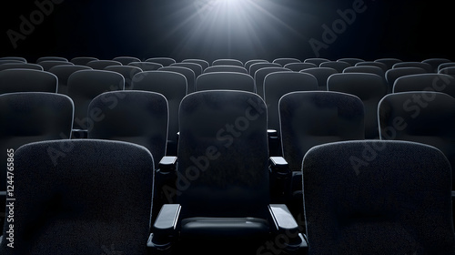 Obraz premium Empty cinema seats, spotlight, dark theater, movie screening