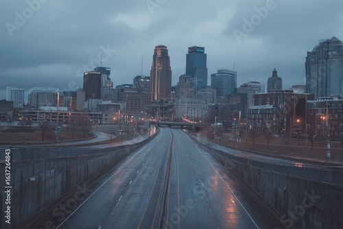 © Spartan, Fototapeta premium Empty city highway at dawn, urban view