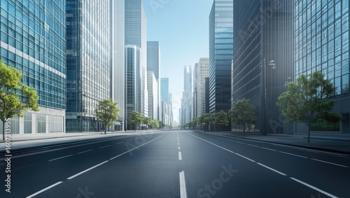Fototapeta premium Empty city street, modern skyscrapers
