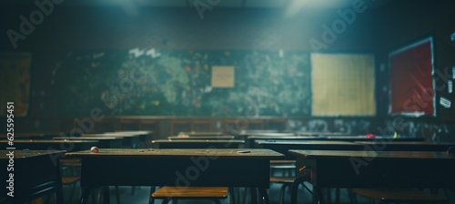 Obraz premium Empty classroom interior melancholic background. Generative AI technology.