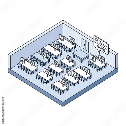 © Aleksandr_79, Fototapeta premium Empty classroom layout with multiple desks.