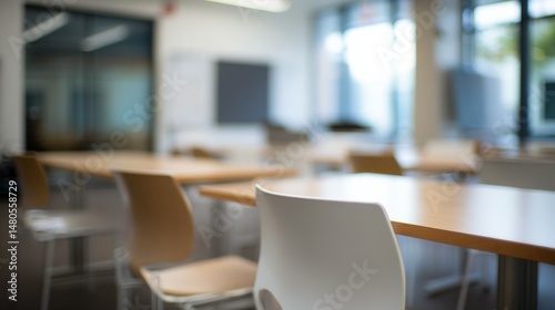 Fototapeta premium Empty classroom with chairs and tables is waiting for students