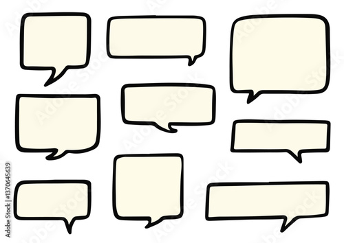 © nocstic, Obraz premium Empty Comic Speech Bubbles Set – Black Border Retro Dialog Boxes - Minimal Simple Blank Bubble Graphics
