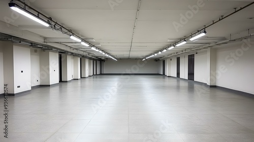 Obraz premium Empty Concrete Basement Corridor With Fluorescent Lights