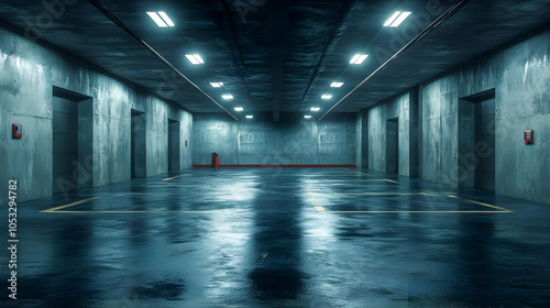 © Trippple, Fototapeta premium Empty Concrete Garage Interior 3D Illustration