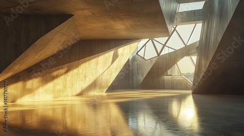 © edy, Obraz premium empty concrete open space interior with sunlight
