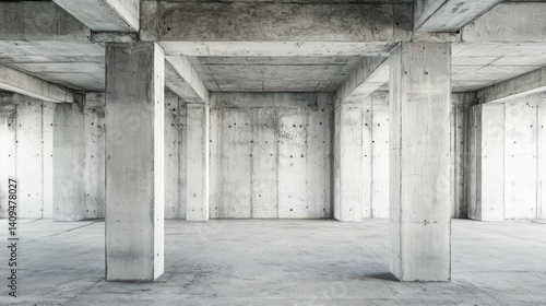 © Sabita, Obraz premium Empty concrete structure interior with columns and beams.