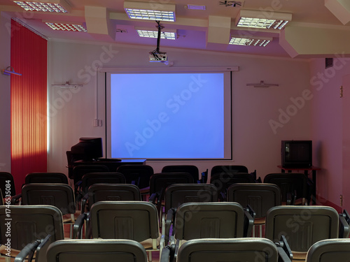© Roman Milert, Fototapeta premium Empty conference room with blank projector screen
