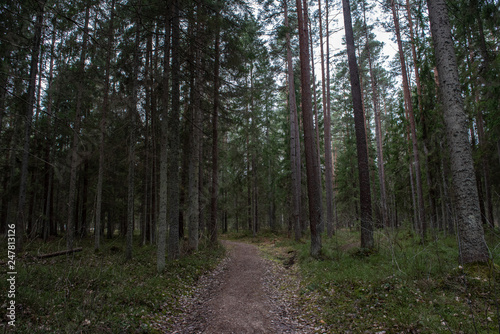 © Martins Vanags, Fototapeta premium empty country gravel road with mud puddles and bumps