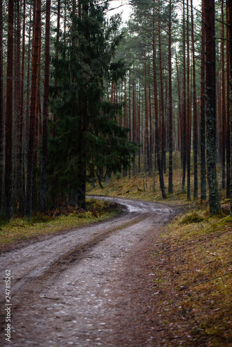 © Martins Vanags, Fototapeta premium empty country gravel road with mud puddles and bumps