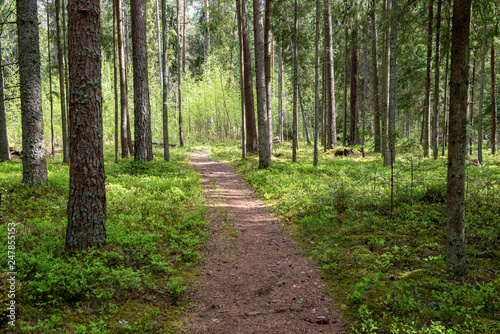 © Martins Vanags, Obraz premium empty country gravel road with mud puddles and bumps