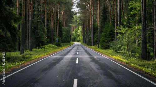 © Sahir Stock, Obraz premium Empty country road winding through a pine forest