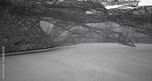 © SERGEYMANSUROV, Fototapeta premium Empty dark abstract concrete smooth interior with wires . Architectural background. 3D illustration and rendering