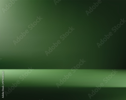 © Tan nitipong, Fototapeta premium Empty dark green studio background. Empty room with light effect. Space for selling products, backdrop, wallpaper, background. Vector illustration.