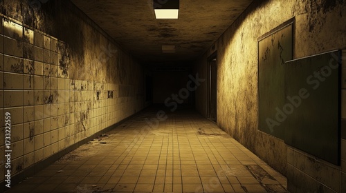 Obraz premium Empty, decaying hospital corridor
