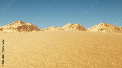 © tugkiara, Fototapeta premium Empty desert landscape with mountains under a clear sky. Possible use Stock photo