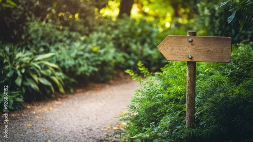 © pinporn manosri, Fototapeta premium Empty directional signpost in a city park, surrounded by lush greenery and a walking path