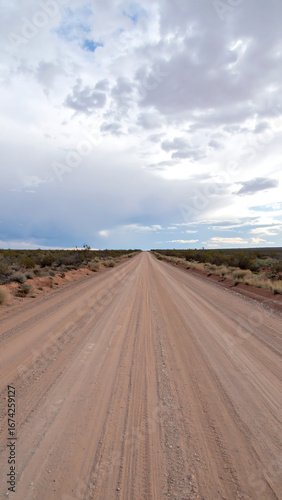 © Hartini, Naklejka premium Empty dirt road extends to cloudy sky
