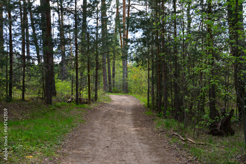 Obraz premium empty Dirt Road Through a Lush Forest Scene