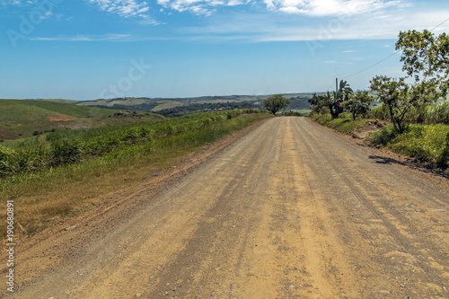 Naklejka premium Empty Dirt Road Through Trees and Sugar Cane Plantations