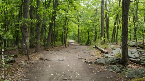 © The Little Hut, Fototapeta premium Empty Dirt Trail in the Forest at Hudson Highlands State Park in Cold Spring New York : Generative AI