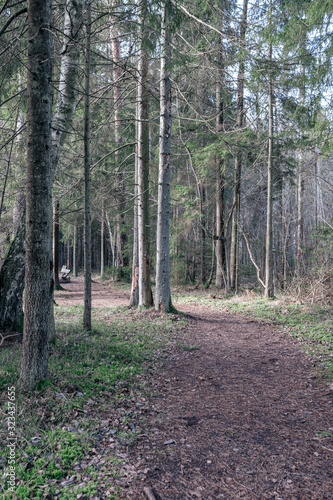 © Martins Vanags, Fototapeta premium empty dirty gravel dirt road in forest
