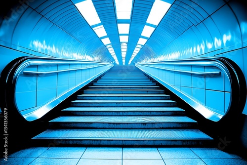 © bella, Fototapeta premium Empty escalator rising to bright light at station