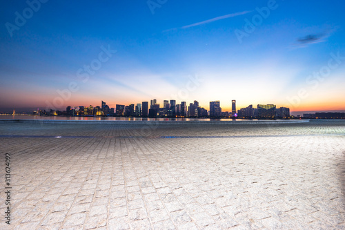 Fototapeta premium empty floor with city skyline