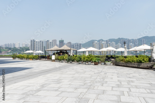Fototapeta premium empty floor with cityscape and skyline of chongqing