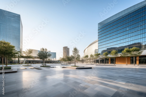 © kalafoto, Fototapeta premium empty floor with modern building at day