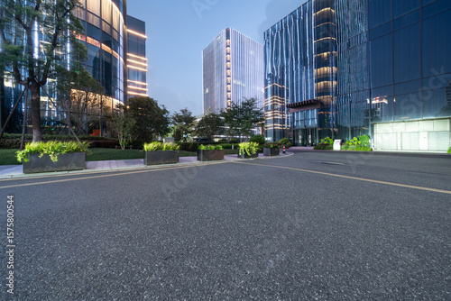 © zhu difeng, Obraz premium empty floor with modern building at night