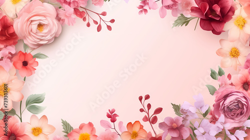 © jiejie, Naklejka premium Empty flower frame with copy space for design of greeting card or invitation