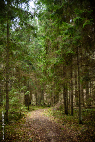 © Martins Vanags, Obraz premium empty forest road in the countryside in autumn. gravel surface