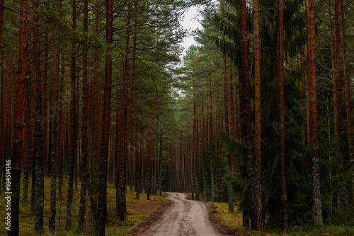© Martins Vanags, Obraz premium empty forest road in the countryside in autumn. gravel surface