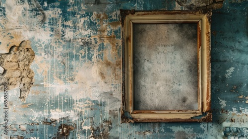© TheWaterMeloonProjec, Naklejka premium Empty frame on antique weathered wall