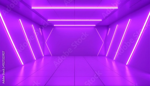 Obraz premium Empty futuristic corridor bathed in vibrant purple neon lights.