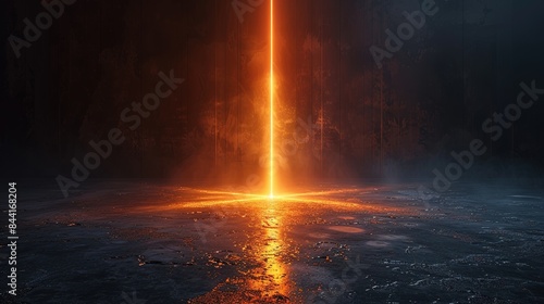 © kovalovds, Obraz premium Empty futuristic dramatic sci-fi scene. Reflection of neon lights on wet asphalt. Dark background. Generative AI